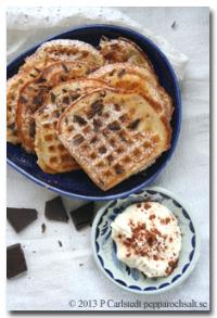 I helgen tjuvstartar vi våffelfrossan, gärna med lite mindre traditionella våfflor att servera till efterrätt. Franska våfflor fyllda med vaniljkräm eller chokladvåfflor avslutar en lätt måltid med finess.